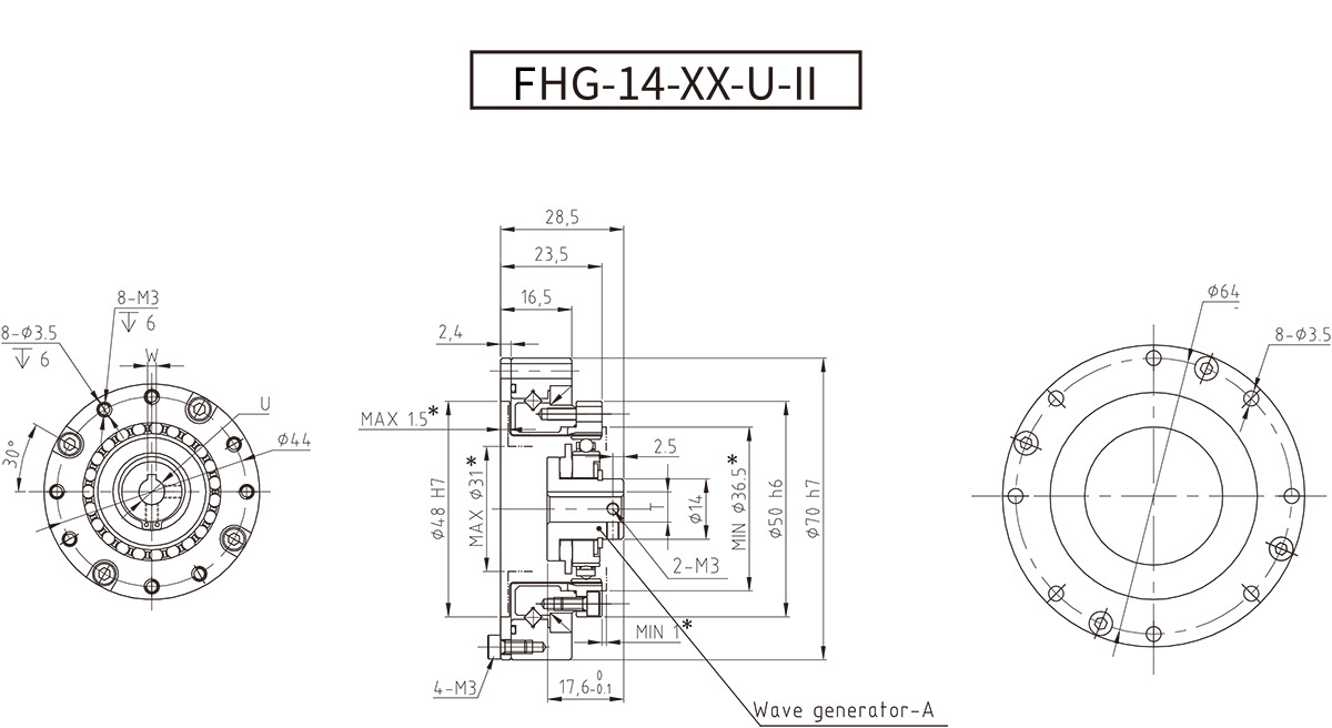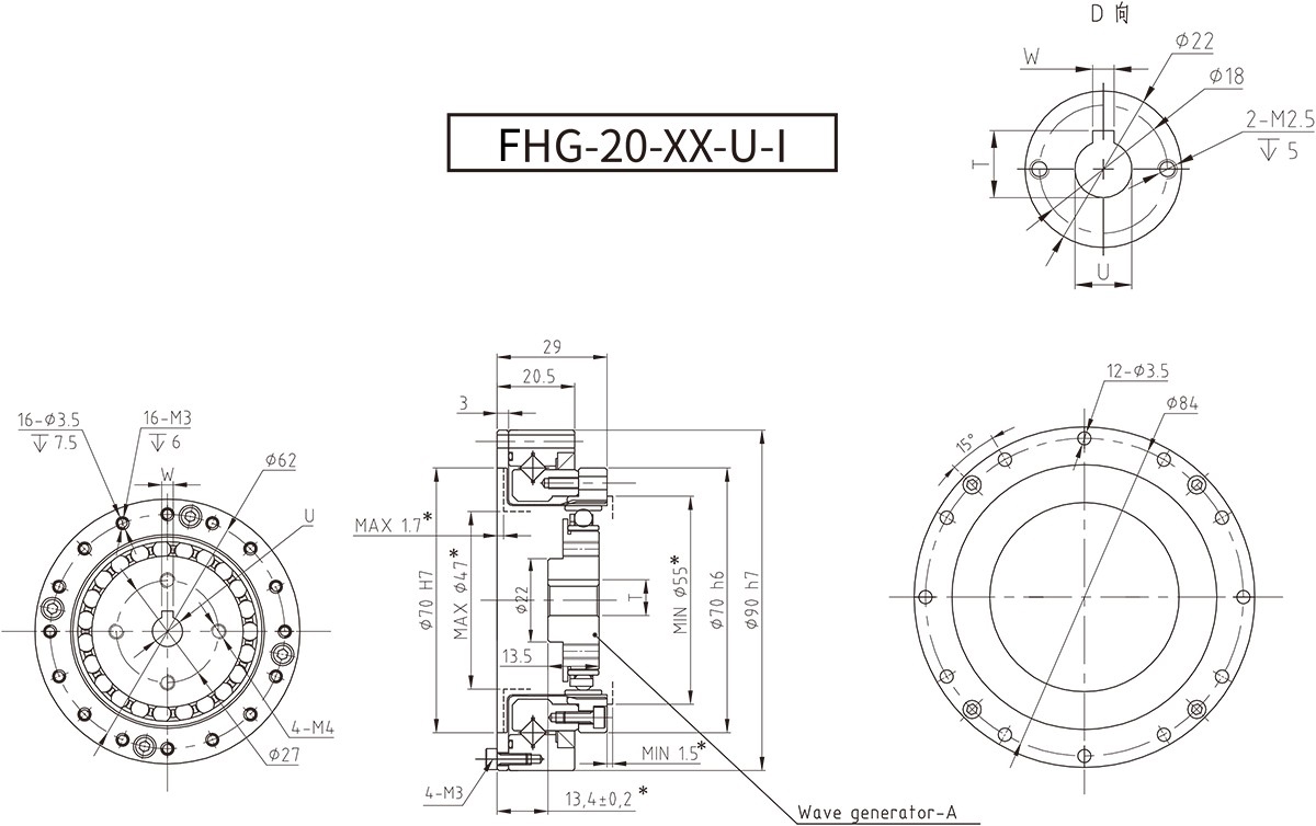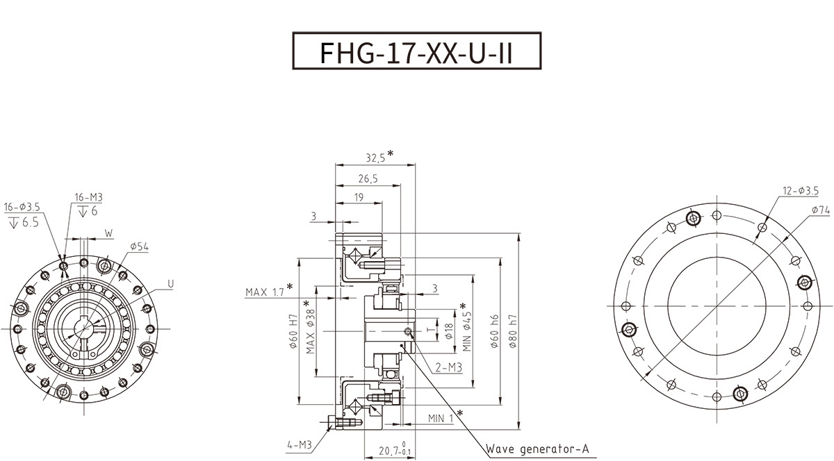 ● 波發(fā)生器凸輪自帶輸入軸,可對應(yīng)多種輸入形態(tài)