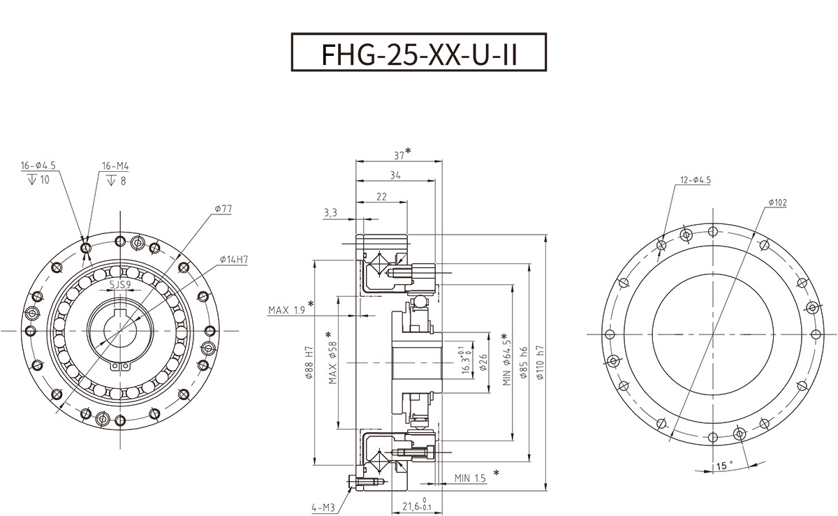 在FHG-III系列的基礎(chǔ)上,讓客戶擁有更大的設(shè)計自由度,在保持原有性能參數(shù)不變的前提下,降低了減速器自身的重量和厚度