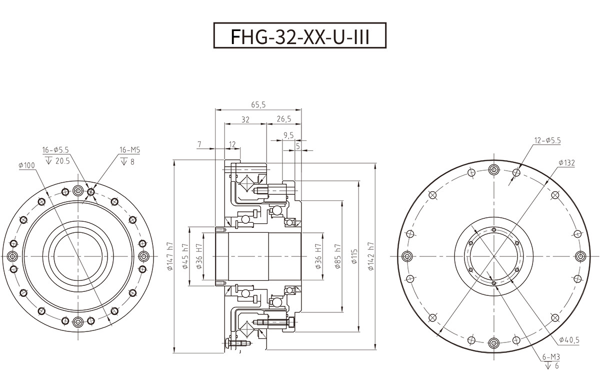 FHG系列諧波減速器柔輪為中空翻邊形標(biāo)準(zhǔn)筒結(jié)構(gòu),整機(jī)結(jié)構(gòu)緊湊,是針對高轉(zhuǎn)矩的客戶研發(fā)的新品。